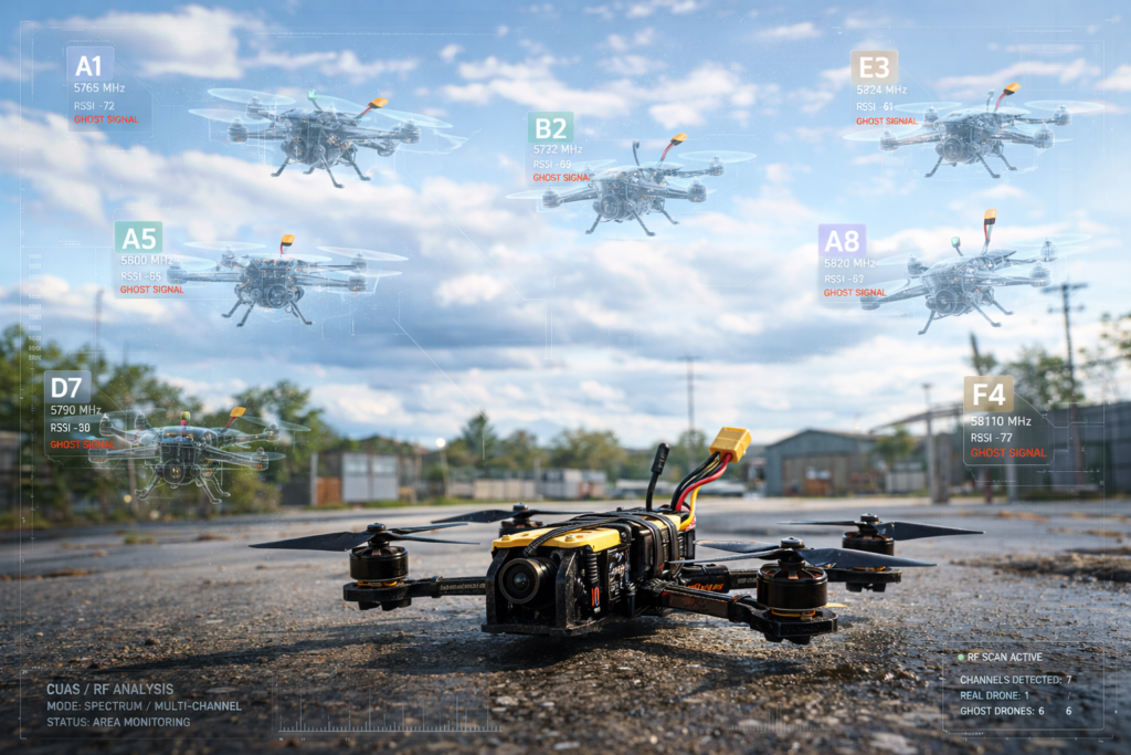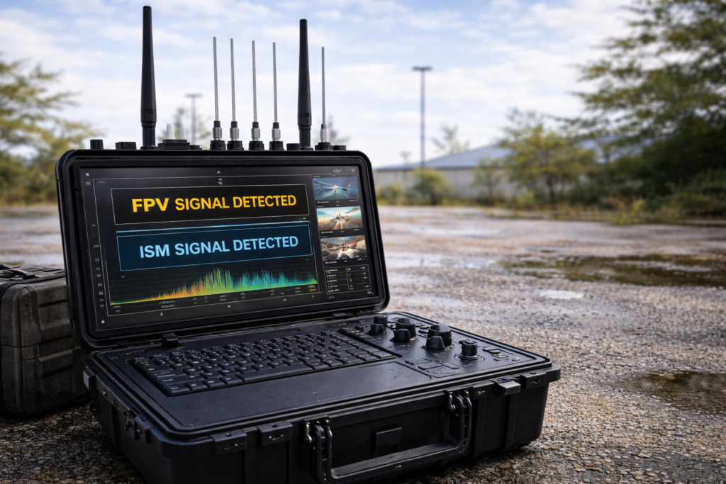 En desarrollo futura extension hasta 10 GHz - Identificación de señales FPV, ISM (2.4 GHz) y enlaces C2.